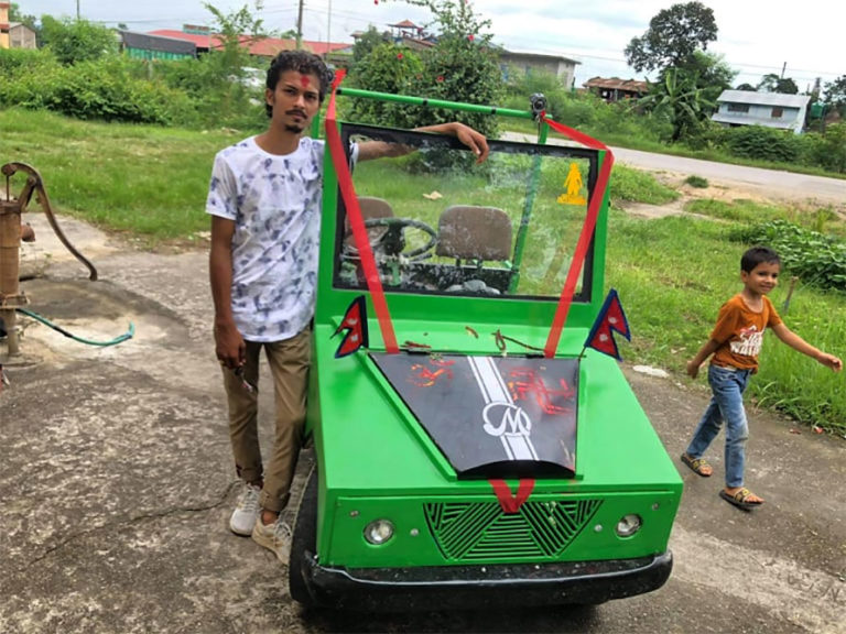 चितवनका एक युवाले चारपांग्रे गाडी निर्माण गरेका छन् । मोटरसाइकलको पुरानो इन्जिन प्रयोग गरेर चितवनको गैडाकोटका मुस्कान सापकोटाले चारपांग्रे गाडी बनाएका हुन् । मुस्कानले हेर्दा ठ्याक्कै मिनि ट्रक जस्तै देखिने गाडि अगाडि चालकसहित २ जना बस्ने मिल्ने र पछाडि सामान राख्न मिल्ने गरी गाडी बनाएका हुन् ।उनले बनाएको गाडि केहिदिन अघि स्थानीय जनप्रतिनिधिहरु समेतकेा सहभागीतामा स्थानीय मन्दिरमा सार्वजनिक गरिएको थियो ।