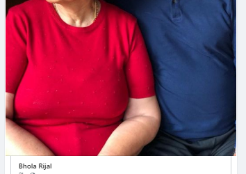 बुधबार आफ्नो फेसबुक अकाउन्टमा भोला रिजालले श्रीमतीसँगको फोटो पोस्ट गर्दै लेखेका छन्, ‘हामी दुबै आज कोरोना संक्रमित भएका छौं तर थोरै पनि भयभित छैनौं । हामीलाई मात्र होइन, सबैले अरुलाई पनि हौसला दिऔं । संक्रमितहरुको मनोबलका साथै स्वास्थ्यकर्मी जो आफ्नो जीवन राष्ट्रको लागि समर्पण गरिरहेका छन्, सबैलाई सलाम छ ।’