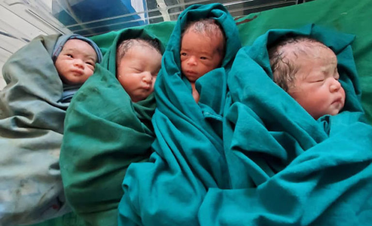 एक जना शिशुलाई एनआईसीयूमा राखेको भए पनि र तीन जनालाई आमाको जिम्मा लगाइसकेको डा. सुवेदीले बताए । एक जना शिशुलाई एनआईसीयूमा राखे पनि अक्सिजन दिन नपरेको उनले बताए । एनआईसीयूमा राखेको बच्चाको तौल आठ सय ग्राम छ भने अन्य तीन जनाको तौल क्रमश १.८, १.९, १.६ ग्राम रहेको छ ।