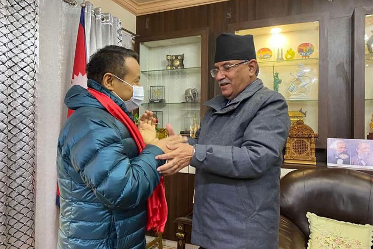 चीनबाट सोमबार बेलुकी काठमाडौं आइपुगेका पुन प्रचण्डलाई भेट्न आज बिहान खुमलटारस्थित निवासमा पुगेका हुन् । भेटमा अध्यक्ष प्रचण्डले स्वास्थ्यबारे जानकारी लिंदै पूर्ण स्वास्थ्य लाभको कामना गरेका थिए । ‘लामो समयको उपचार पश्चात् स्वदेश फर्किनुभएका हाम्रो पार्टीका नेता वर्षमान पुन ‘अनन्त’लाई अध्यक्ष कमरेड प्रचण्डले निवास खुमलटारमा स्वागत तथा उहाँको पूर्ण स्वास्थ्यलाभको कामना गर्नुभयो,’ प्रचण्डको फेसबुक पेजमा लेखिएको छ । सो भेटमा समसामयिक राजनीतिक अवस्था र पार्टीका कामबारे पनि कुराकानी भएको प्रचण्डको सचिवालयले जनाएको छ ।