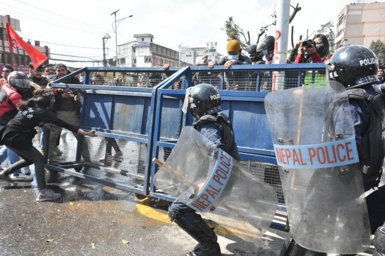 एमसीसीको विरोधमा उत्रिएका प्रदर्शनकारीमाथि प्रहरीले रबरको गोली प्रहार गरेको छ। काठमाडौंको बिजुलीबजारमा प्रहरीले रबरको गोली प्रहार गरेको।