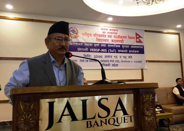 राष्ट्रिय परिचयपत्र तथा पञ्जीकरण विभागद्वारा रुपन्देहीको तिलोत्तमामा शनिबार आयोजित व्यक्तिगत घटना दर्ता तथा सामाजिक सुरक्षा व्यवस्थापन प्रणालीसम्बन्धी कार्यक्रममा उनले व्यक्तिगत घटना संकलन, भण्डारण र वितरणको काम प्रभावकारी ढंगले अघि बढाउन निर्देशन दिए ।