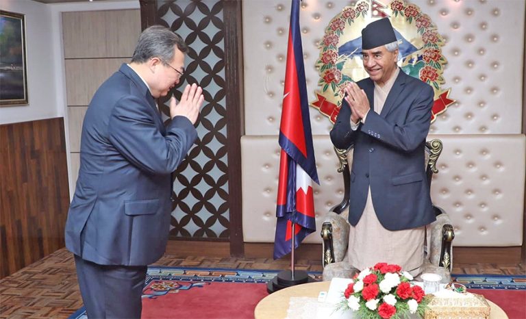 नेपाल भ्रमणमा रहेका चिनियाँ कम्युनिस्ट पार्टी (सीपीस) का विदेश विभाग प्रमुख लिउ जियानचाओले आइतबार प्रधानमन्त्री शेरबहादुर देउवासँग भेट गरेका छन् ।