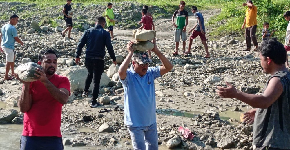 ‘यहाँ बाढीले सडक बगाउँदा सवारी साधन चलाउनै नहुने अवस्था थियो,’ मेयर बुढाथोकीले भने, ‘हामीले हिजो साँझ जनश्रमदान गरेर सडक निर्माण गर्ने सल्लाह गरेका थियौँ। हामी सबैजना लागिपर्दा बाढीले बगाएको सडक आज पुनर्निर्माण भएको छ।’
