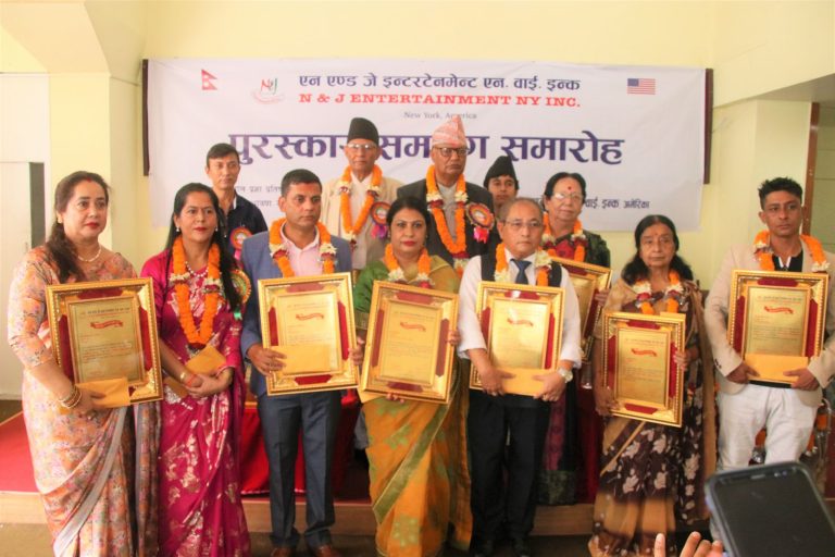 काठमाण्डौ – एन एन्ड जे इन्टरटेन्मेन्ट एन वाइ इन्कले नेपाली साहित्य, सञ्चार र समाज सेवामा समर्पित ब्यक्तित्वहरुलाई सम्मान गरेको छ । शनिबार प्रज्ञा-प्रतिष्ठानको लेखखनाथ सभाहलमा आयोजित ‘पुरस्कार समर्पण समारोह’ को आयोजना गरी सम्मान गरेको हो ।