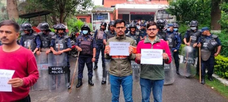 त्रिवि उपकुलपति धर्मकान्त बाँस्कोटासहितले स्मृति भवनमा पत्रकार सम्मेलन गरेका थिए। सोही बेला नेविसंघले उपकुलपतिले राजीनामा दिनुपर्ने, हुबहु प्रश्नपत्रबारे छानबिन समितिको प्रतिवेद सार्वजनिक गरिनुपर्ने लगायत माग राखेर प्रदर्शन गरिरहेको थियो।