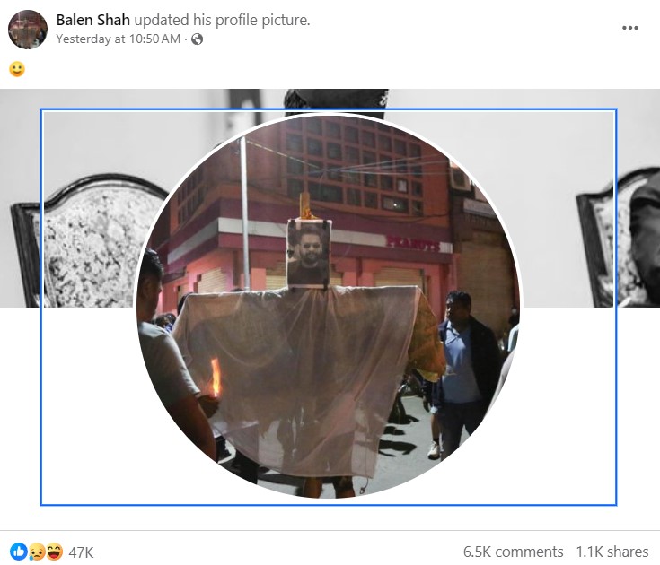 स्थानीयले आफ्नो पुत्ला जलाएपछि बालेनले मुस्कानको इमोजीसहित आफ्नो व्यक्तिगत फेसबुक आइडिको प्रोफाइलमा उक्त फोटो राखेका छन् । उनको उक्त फोटोमा समर्थकले राम्रो काम गर्दा जल्न पनि तयार हुनुपर्ने रहेछ भन्दै प्रतिक्रिया दिएका छन् ।