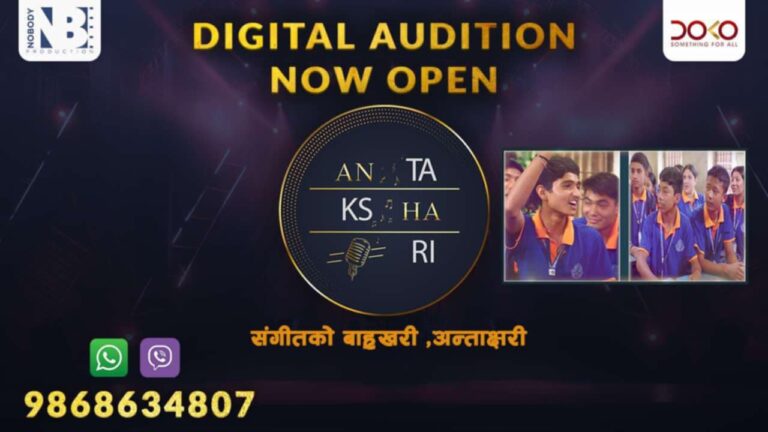 प्रोडक्सनले गत भदौ २४ गते काठमाडौंमा एक भव्य कार्यक्रमको आयोजना गर्दै रियालिटी शो ‘अन्ताक्षरी’ को घोषणा गरेको थियो । नोबडी प्रोडक्सनको आधिकारिक सामाजिक सञ्जाल डोकोमार्फत आज साँझ ५ बजे यसबारे भिडियो पोस्ट गर्दै डिजिटल अडिसनको घोषणा गरिएको हो ।