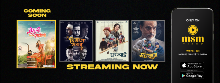 नेपाली ओटिटी प्लेटफर्म ‘एमएसएम’ भिडियो एपमा हाल तीन ब्लकबस्टर फिल्महरु उपलब्ध गराएको छ । ‘दिमाग खराब, माहाजात्रा र घरज्वाईँ’ फिल्म यो एप डाउनलोड गरेर हेर्न सकिन्छ ।