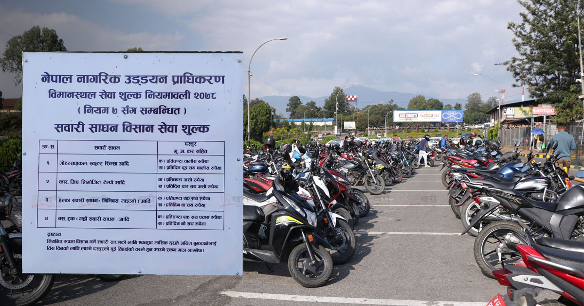 यसअघि पार्किङ गरेबापत दुईपांग्रे सवारीले प्रतिघण्टा २० रुपैयाँ तिर्ने गरेका थिए । अहिले उक्त मूल्य दुई गुणासम्म बढेको छ। अहिले विमानस्थलमा मोटरसाइकल, स्कुटरलगायत दुईपांग्रे सवारीले प्रतिघण्टा ४० रुपैयाँ तिरिरहेका छन् ।