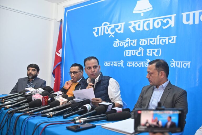 काठमाडौं– राष्ट्रिय स्वतन्त्र पार्टी (रास्वपा) ले सरकारविरुद्ध ७ मिनेट खबरदारी घण्टी बजाउने भएको छ । रास्वपाले मंगलबार बेलुकी ७ बजे सरकारविरुद्ध ७ मिनेट खबरदारी घण्टी बजाउन लागेको हो ।