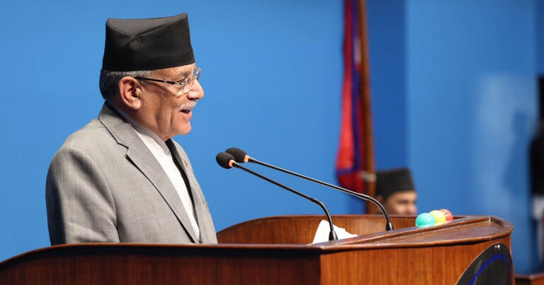 काठमाडौं – प्रमुख प्रतिपक्षी दल माओवादीका अध्यक्ष पुष्पकमल दाहाल प्रचण्डले सरकारको नीति तथा कार्यक्रमलाई लिएर सरकारमाथि प्रहार गरेका छन् । सोमबार प्रतिनिधिसभा बैठकमा नीति तथा कार्यक्रममाथिको छलफलमा भाग लिँदै उनले नीति तथा कार्यक्रमलाई कर्मकाण्डीको संज्ञा दिए । आफ्नो सरकारले ल्याएको नीति तथा कार्यक्रम र बजेटमा रहेका लोकप्रिय कार्यक्रमलाई अहिलेको सरकारले हटाएको भन्दै आपत्ति जनाए ।