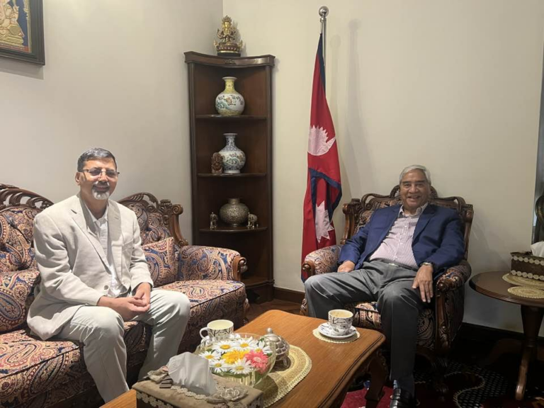 शर्माले शुक्रबार सत्तारुढ कांग्रेस सभापति शेरबहादुर देउवालाई उनकै निवास बुढानिलकण्ठ पुगेर भेटघाट गरेका छन् । ‘पूर्वप्रधानमन्त्री तथा नेपाली कांग्रेसका सभापति शेरबहादुर देउवासँग देशको समसामयिक राजनीतिक परिस्थितिबारे छलफल भयो,’ शर्माले भने।