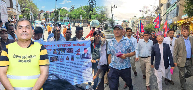 नवराज सुवेदी नेतृत्वको ुराजसंस्था पुनर्स्थापनाका लागि संयुक्त जनआन्दोलन समितिु को आह्वानमा राजेन्द्र लिङ्गदेनको राप्रपा, कमल थापाको राप्रपा नेपालसहितले आज काठमाडौँमा शक्ति प्रदर्शन गर्दैछन् ।