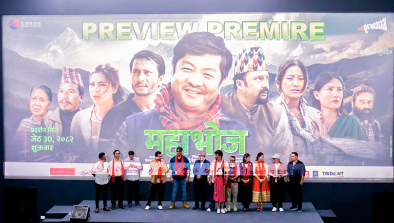 फिल्म ‘महाभोज’को प्रिभ्यू प्रिमियर पोखरामा आयोजना गरिएको छ । पोखरामा आयोजित प्रिभ्यू प्रिमियरमा फिल्मका मुख्य कलाकारहरु सहभागी भए ।