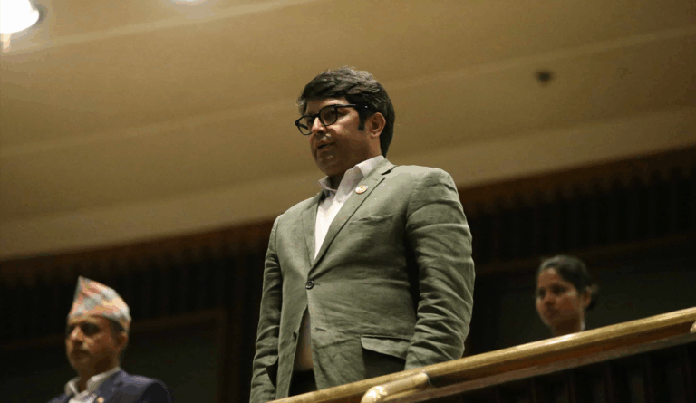 काठमाडौं- सत्तारुढ नेपाली कांग्रेसका सांसद राजेन्द्र बजगाईंले बजेटप्रति असन्तुष्टि जनाउँदै आइतबारको प्रतिनिधिसभा बैठकमा संसद्को दर्शक दीर्घामा पुगेर विरोध जनाएका छन्।