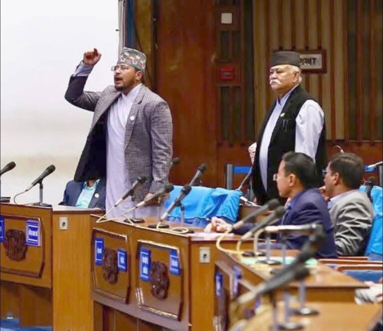‘संसद्मा आन्दोलन भइरहँदा संसद् चलाउनु उचित हुन्छ ? उचित हुँदैन भन्ने मलाई लाग्छ सम्माननीय सभामुखज्यू । त्यही भएर कुरा केही नराखी उहाँहरु पनि हामी पनि जनताले जिताएको जनप्रतिनिधि हो । भिजिट भिसा प्रकरणमा दोषीलाई कारबाही गर्ने भन्ने मागमा सबैले साथ दिनुस् । यसरी संसद चलाउनु यो संसदीय अभ्यास होइन । यो दादागिरी हो । दादागिरी बन्द गर्नु्स्,’– सभामुख घिमिरेलाई सम्बोधन गर्दै नेता शाहीले भने ।