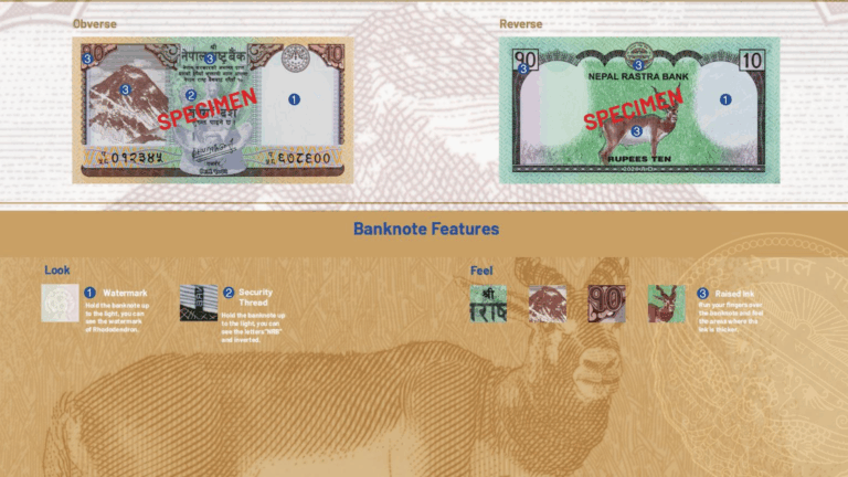 नयाँ नोटको अग्र भागमा बायाँतर्फ सगरमाथाको चित्र, दायाँतर्फ लालीगुराँसको पानीछाप रहेको छ। नोटमा गभर्नरको दस्तखत रहने स्थानमा तत्कालिन गभर्नर महाप्रसाद अधिकारीको दस्तखत रहेको छ। नोटका तल्लो भागको बोर्डरमा नोटको क्रम नम्बर नेपालीमा वि.स. २०८१ लिखिएको हुनेछ। त्यसैगरी नोटको पृष्ठ भागमा भने नोटको मध्य भागको माथिल्लो खण्डमा अंग्रेजीमा नेपाल राष्ट्र बैंक लेखिएको हुनेछ। मध्य भागमा कृष्णसारको चित्र रहेको हुनेछ, तल्लो भागको बोर्डरमा अंग्रेजीमा दश रुपैयाँ लेखिएको हुनेछ। नोटको तल्लो भागको बोर्डरमा नोटको क्रम सङ्ख्या अंग्रेजीमा सन् २०२४ मा लेखिएको हुनेछ।