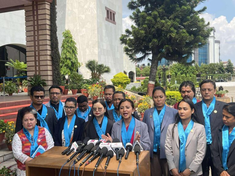 काठमाडौं — प्रतिनिधिसभा बैठकमा राष्ट्रिय स्वतन्त्र पार्टी (रास्वपा) का सांसदहरूले निलो स्कार्फ (रिबन) लगाएर गरेको विरोध प्रदर्शनलाई लिएर नेपाली कांग्रेसले आपत्ति जनाएको छ।