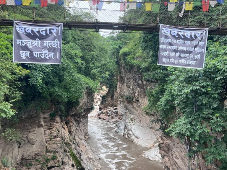 काठमाडौं । चोभारस्थित गल्छी साँघुरो भएको भन्दै सरकारले फेरि डाँडा काट्ने तथा ढुंगा फुटाउने योजना ल्याएपछि विवाद सर्जना भएको छ। बाल सम्पदाविद् तथा स्थानीय तह सरकारी योजनाको विरोधमा उत्रिएका छन् । उनीहरूले चोभारस्थित गल्छीमा कालो ब्यानर टाँगेका छन् ।