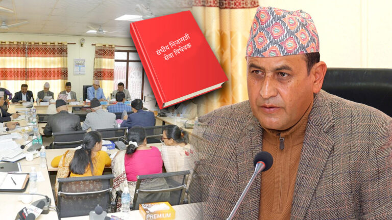 काठमाडौं । निजामती सेवा विधेयकमा अनधिकृत रूपमा छेडखानी भएपछि रडाको मच्चिएको छ । राज्य व्यवस्था तथा सुशासन समितिले सर्वसम्मत पास गरी फुल हाउसले बहुमतले पारित गरेको संघीय निजामती विधेयकमा सचिवहरूकै स्वार्थअनुसार ‘बाहेक’ शब्द थपिएपछि यसले राजनीतिमै हलचल मच्चिएको छ ।