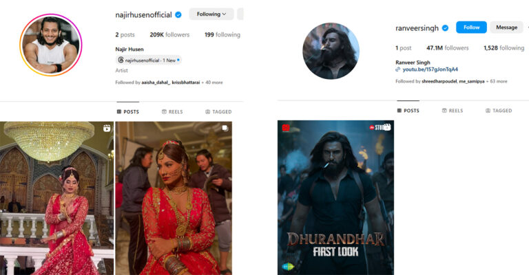 २ लाख ९ हजार फलोअर्स भएको नाजिरको इन्स्टाग्राम एकाउन्टमा अहिले २ वटा मात्र पोस्ट छ । ती दुई पोस्ट उनको रिलिज हुन लागेको नयाँ फिल्म ‘गून्यू चोलो’को हो । यो फिल्ममा नाजिर तेस्रो लिङ्गीको भूमिकामा छन् ।