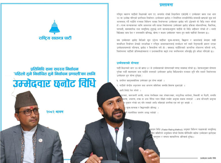काठमाडौं – राष्ट्रिय स्वतन्त्र पार्टीले उम्मेदवार हुन प्रहरीको चारित्रिक प्रमाणपत्र अनिवार्य गरेको छ । रूपन्देही–३ को उपचुनावको सन्दर्भमा रास्वपाले उम्मेदवार छनोटसम्बन्धी कार्यविधि तयार पार्दै प्रहरी रिपोर्ट अनिवार्य गरेको हो । जसमा असल चालचलन रहेको हुनुपर्ने रास्वपाले बताएको छ ।