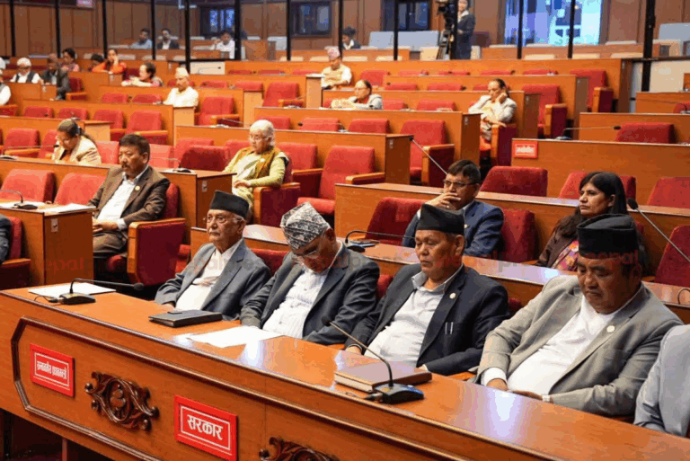 यस्तै दृश्य बुधबार पनि दोहोरिएको छ । आज त एकजना होइन, तीन–तीनजना मन्त्री कुर्सीमा निदाएका छन् । राष्ट्रियसभा बैठकमा नेपालको अतिकम विकसित राष्ट्रबाट विकासशील राष्ट्रमा स्तरोन्नतिसम्बन्धी अध्ययन प्रतिवेदन २०८१ माथि छलफल चलिरहँदा उपप्रधान तथा अर्थमन्त्री विष्णु पौडेल, युवा तथा खेलकुदमन्त्री तेजुलाल चौधरी र रक्षामन्त्री मानवीर राई निदाएका हुन् ।