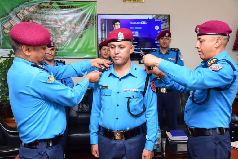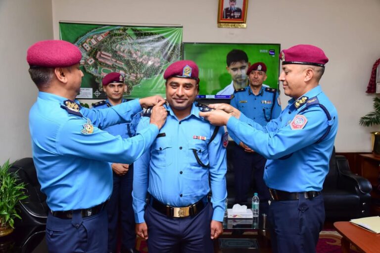 नेपाल प्रहरी प्रधान कार्यालय, मानवश्रोत विकास विभाग कर्मचारी प्रशासन शाखाकाे निर्णयानुसार जनपद प्रहरी समूह तर्फको प्रहरी नायव निरीक्षक पदबाट प्रहरी बरिष्ठ नायव निरीक्षक पदमा र प्राविधिक प्रहरी समूह, संचार तर्फको प्रहरी बरिष्ठ हवल्दार पदबाट प्रहरी सहायक निरीक्षक पदमा वढुवा हुनु भएका प्रहरी कर्मचारीहरुलाई राष्ट्रिय प्रहरी प्रतिष्ठानका कार्यकारी निर्देशक प्रहरी अतिरिक्त महानिरीक्षक सुदिप गिरीले दर्ज्यानी चिन्हद्वारा सुशोभन कार्यक्रम सम्पन्न ।