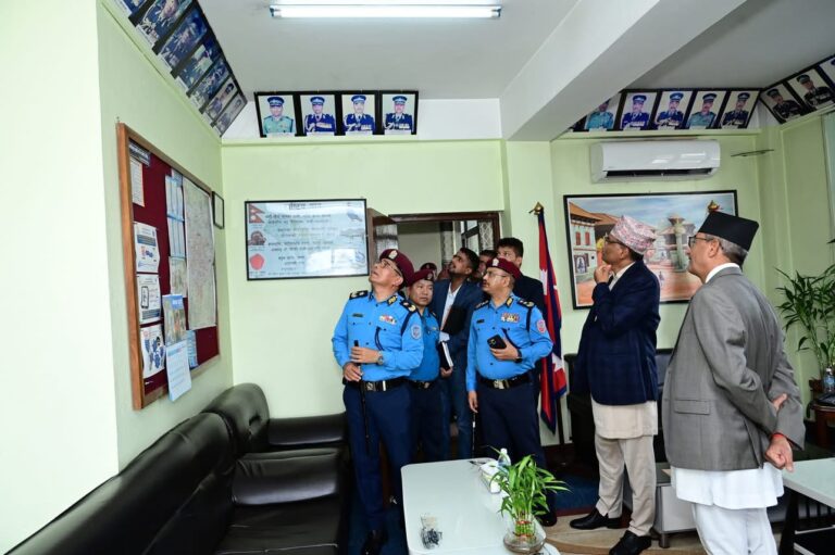 काठमाडौं l गृहमन्त्री रमेश लेखकले शुक्रबार काठमाडौं उपत्यका प्रहरी कार्यालय रानीपोखरीको निरीक्षण भम्रण गर्नुका साथै जिल्ला प्रहरी परिसर काठमाडौंस्थित काठमाडौं उपत्यका प्रहरी कार्यालयको परिचालन कक्षको अवलोकन समेत गर्नुभयो । सो अवसरमा गृहमन्त्री लेखकले उक्त परिचालन कक्ष सम्बन्धी गतिविधिबारे जानकारी समेत लिनुभयो ।