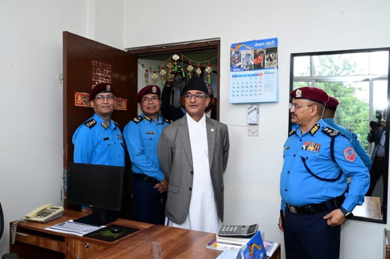 काठमाडौं l गृहमन्त्री रमेश लेखकले शुक्रबार काठमाडौं उपत्यका प्रहरी कार्यालय रानीपोखरीको निरीक्षण भम्रण गर्नुका साथै जिल्ला प्रहरी परिसर काठमाडौंस्थित काठमाडौं उपत्यका प्रहरी कार्यालयको परिचालन कक्षको अवलोकन समेत गर्नुभयो । सो अवसरमा गृहमन्त्री लेखकले उक्त परिचालन कक्ष सम्बन्धी गतिविधिबारे जानकारी समेत लिनुभयो ।