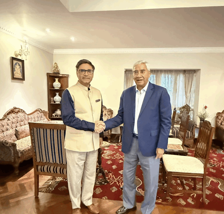 काठमाडौं – नेपालको दुई दिने भ्रमणमा आइपुगेका भारतीय विदेश सचिव विक्रम मिश्रीले कांग्रेस सभापति शेरबहादुर देउवालाई भेटेका छन् ।
