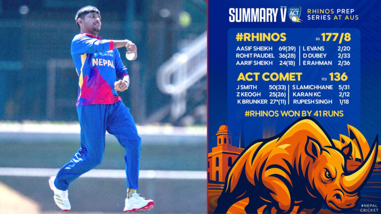 मंगलबार बिहान भएको पहिलो अभ्यास खेलमा नेपालले अष्ट्रेलियन क्यापिटल टेरिटोरी (एसिटी) लाई ४१ रनले पराजित गरेको हो ।