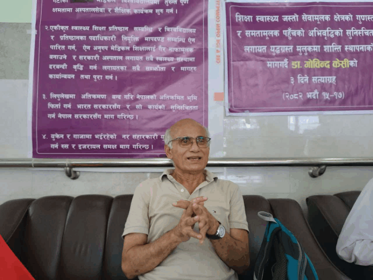 काठमाडौं – चिकित्सा शिक्षा सुधारका अभियन्ता डा.गोविन्द केसीले फेरि सत्याग्रह सुरु गरेका छन् । निजी मेडिकल कलेजको सिट वृद्धि गर्ने सरकारको निर्णयविरुद्ध केसीले आइतबारदेखि सत्याग्रह थालेका हुन् ।