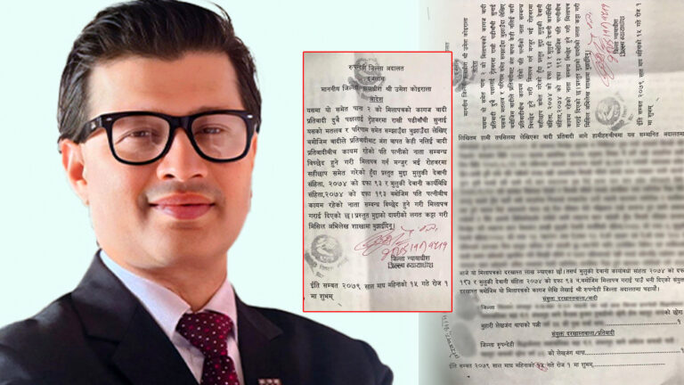 काठमाडौं । रुपन्देही ३ मा रास्वपाका उम्मेदवार डा.लेखजंग थापाले आफ्नो पहिलेकी श्रीमतीसँग भएको सम्बन्ध विच्छेदको कागजपत्र सार्वजनिक गरेका छन् । पार्टीले मंगलबारसम्मको डेडलाइन दिएर उनलाई डिभोर्सको कागजपत्र सार्वजनिक गर्न समय दिएको थियो । थापाले मंगलबार बिहान सामाजिक सञ्जालमार्फत अदालतमा भएको डिभोर्सको कागज सार्वजनिक गरेका हुन् । थापाले २०७९ माघ १५ गते जिल्ला अदालत रुपन्देहीमा न्यायाधीश उमेश कोइरालाको इजलासमा सम्बन्ध विच्छेद गरी मिलापत्र गरेको कागज सार्वजनिक गरेका हुन् ।