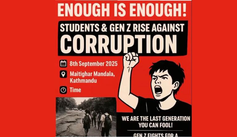 काठमाडौं । सामाजिक सञ्जाल प्रतिबन्ध र भ्रष्टाचारविरुद्ध जेनजी पुस्ताले सोमबार देशभर प्रदर्शनको तयारी गरेका छन् । नेताहरुको भ्रष्टाचारका कारण आफूहरुको भविष्य बर्बाद भएको भन्दै ‘जेनजी’ पुस्ताले यस्तो अभियान थालेको हो।