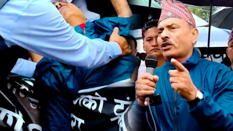 Kulman Ghising बिरुद्ध सडकमा उत्रिएका ट्रेड युनियन जिफन्टका उपाध्यक्ष भाषण गर्दा गर्दै सडकमै अस्ताए