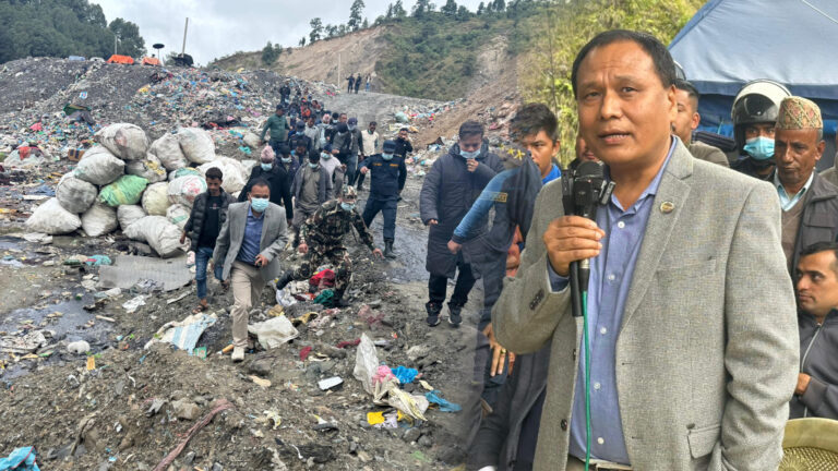 फोहोर विसर्जनमा स्थानीयले अवरोध गरेपछि समस्या समाधानका लागि मन्त्री घिसिङ, शहरी विकास सचिव गोपाल सिग्देल, काठमाडौं, नुवाकोट तथा धादिङका प्रमुख जिल्ला अधिकारी, काठमाडौं महानगरपालिका कार्यकारी अधिकृतसहितको टोली लिएर आइतबार बिहान बन्चरेडाँडा ल्याण्डफिल्ड साइटमा जानु भएको थियो ।