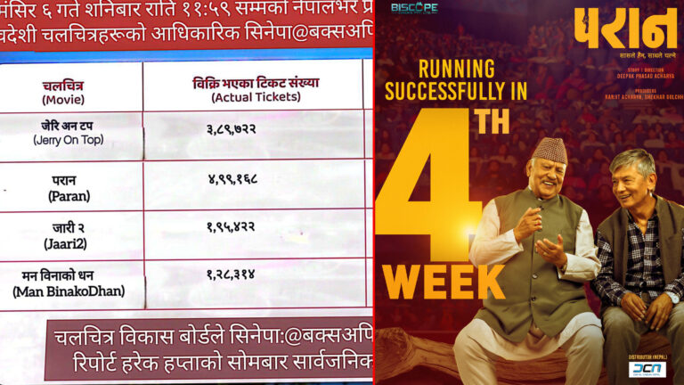 त्यसपछि प्रदर्शनमा आएको ‘परान’ चलचित्रले भने उधुम नै मच्चायो । सुरुवाती तीन दिनसम्म खासै नचलेको नीर शाह स्टारर ‘परान’ ले दर्शकलाई हलसम्म ल्याउन ठूलो योगदान गरेको छ । ‘परान’ ले तेस्रो सातासम्म १४ करोड १६ लाख कमाई गरेको छ । जुन यस वर्ष रिलिज भएका चलचित्रमध्ये सबैभन्दा धेरै कमाई हो । चलचित्र हेर्न झन्डै पाँच लाख दर्शक हलसम्म पुगेका छन् ।