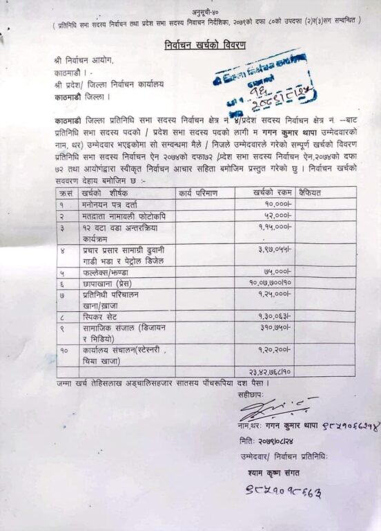 निर्वाचन आयोगका कर्मचारीहरुले केही दिनअघि विभिन्न सञ्चारकर्मीहरूलाई विभिन्न माध्यमहरूबाट करिब एक हजारजनाको सूचीसहित एउटा डिजिटल विवरण बाँडेका थिए । त्यो विवरणमा अघिल्लो चुनावपछि निर्वाचन खर्च विवरण नबुझाएकाले ती उम्मेद्वारहरुमाथि स्पष्टीकरण सोधिएको थियो ।