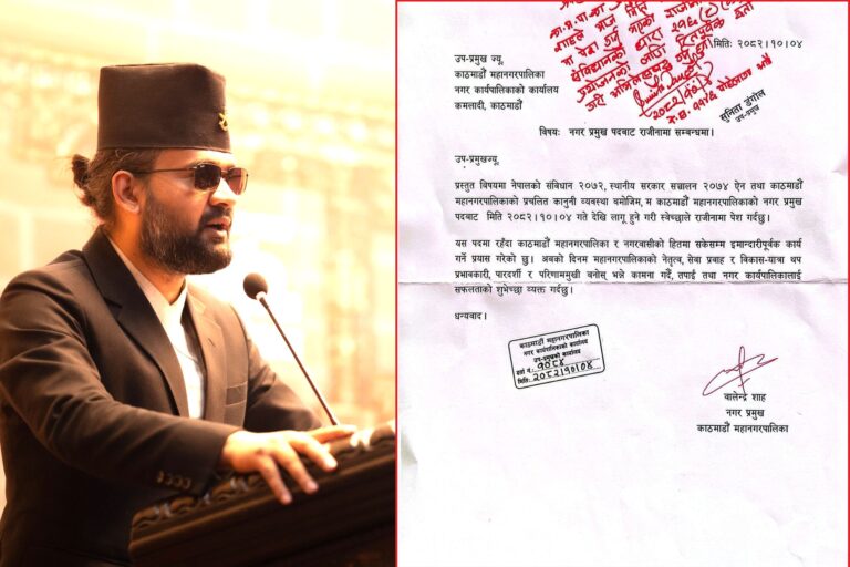 ‘मेयरज्यूले राजीनामा दिइसक्नु भएको छ, बिहानसम्म त आज नदिने कि भन्ने थियो, तर चुनावमा केन्द्रित हुन आजै दिँदा सजिलो हुने भएकोले राजीनामा दिनुभयो,’ बालेन सचिवालयका एक सदस्यले भने, ‘रास्वपाको बैठकमा जानुअघि उहाँले राजीनामा दिनुभएको हो ।’