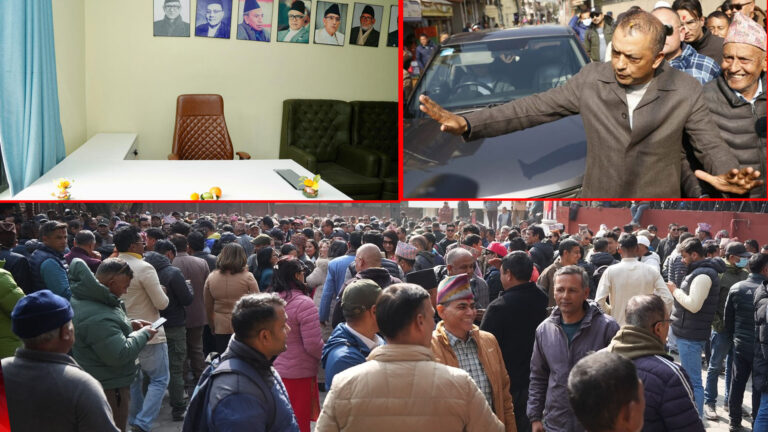 २ बज्नुअघि मात्र सभापति सानेपा पुगेका थिए । कार्यकर्ताको भीडबाट पार्टी कार्यालय प्रवेश गर्न उनलाई निकै हम्मेहम्मे परेको थियो । उनी पार्टी कार्यालय प्रवेश गर्दैगर्दा कार्यकर्ताले ‘अबकी वार गगन सरकार’ को नारा लगाएका थिए । पार्टी कार्यालयको मूलढोकामा पुगेपछि थापाले हात हल्लाए अनि भित्र पसे । सभापतिको पदभार ग्रहण गरेलगत्तै केन्द्रीय समितिको बैठक सुरु हुनेछ ।