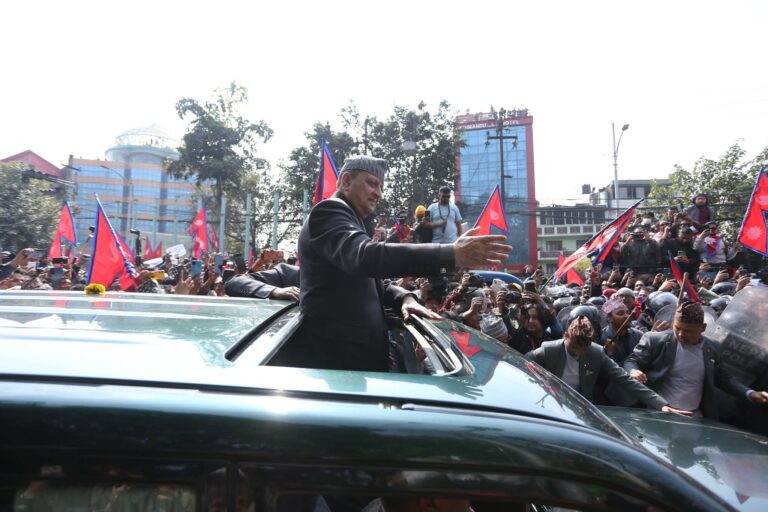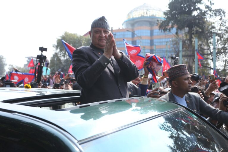 काठमाडौं । पूर्वराजा ज्ञानेन्द्र शाह झापाबाट काठमाडौं आइपुगेका छन् । नियमित हवाई उडान प्रभावित भएपछि उनी हेलिकोप्टर चार्टर गरेर त्रिभुवन अन्तर्राष्ट्रिय विमानस्थल आइपुगेका हुन् । विमानस्थलबाट उनी कारमा चढेर बाहिरिएका थिए । उनलाई स्वागत गर्न सयौं राजावादी चक्रपथमा बसेका छन् ।