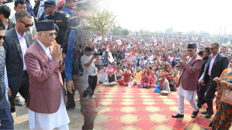 काठमाडौं – फागुन २१ को निर्वाचनअन्तर्गत एमालेले पहिलो चुनावी सभा झापाबाट सुरु गरेको छ । सोमबार एमाले अध्यक्ष केपी ओलीको उपस्थितिमा नेसनल भोलेन्टियर फोर्स कोशी युनिफाइड कमाण्ड घोषणा सभा गरेर एमालेले चुनावी प्रचार अभियान थालेको हो ।