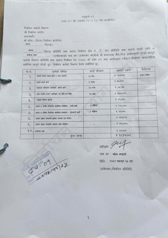 उनले आफ्नो चुनावी प्रचार प्रसारमा करिब १४ लाख रुपैयाँ मात्र खर्च भएको विवरण पेस गरेका छन् ।