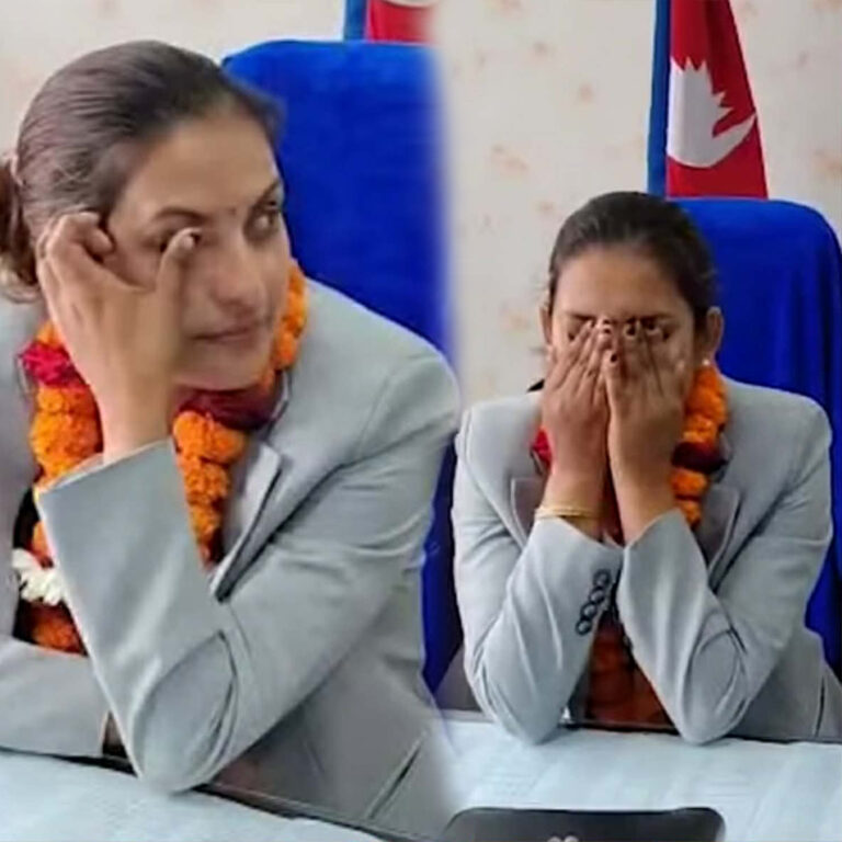 राष्ट्रपति रामचन्द्र पौडेलसँग शीतल निवासमा शपथ गरेलगत्तै सिंहदरबारस्थित मन्त्रालय पुगेकी उनी कर्मचारीले स्वागत गर्नुअघि नै भक्कानिएकी हुन् ।
