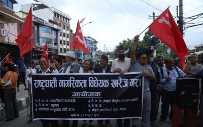 सरकारले नागरिकतासम्बन्धी विधेयक पास गर्न खोजेको भन्दै प्रदर्शन भएको छ । साना ६ दलीय कम्युनिष्ट