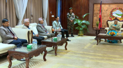 काठमाडौं । प्रधानमन्त्री सुशीला कार्की र एमाले नेताहरूबीच प्रधानमन्त्री निवास बालुवाटारमा छलफल भइरहेको छ। छलफलमा