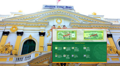 काठमाडौं । नेपाल राष्ट्र बैंकले चुच्चे नक्सासहितको एक सय रुपैयाँको नयाँ नोट बिहीबारबाट प्रचलनमा ल्याएको