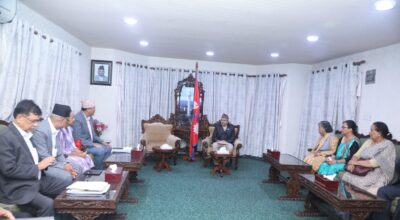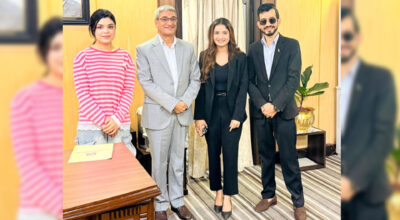 काठमाडौं । गायिका एलिना चौहान र समीक्षा अधिकारीले गृहमन्त्री रमेश लेखकलाई भेटेका छन् । मंगलबार